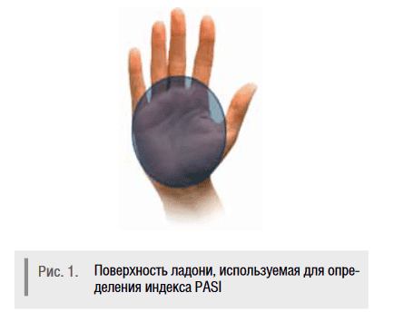 Есть несколько систем, по которым можно определять степень тяжести псориаза. Самая простая из них — оценка пораженных участков тела в процентах. При этом методе ориентиром служит площадь ладони, которая составляет приблизительно 1% от всей поверхности кожи.